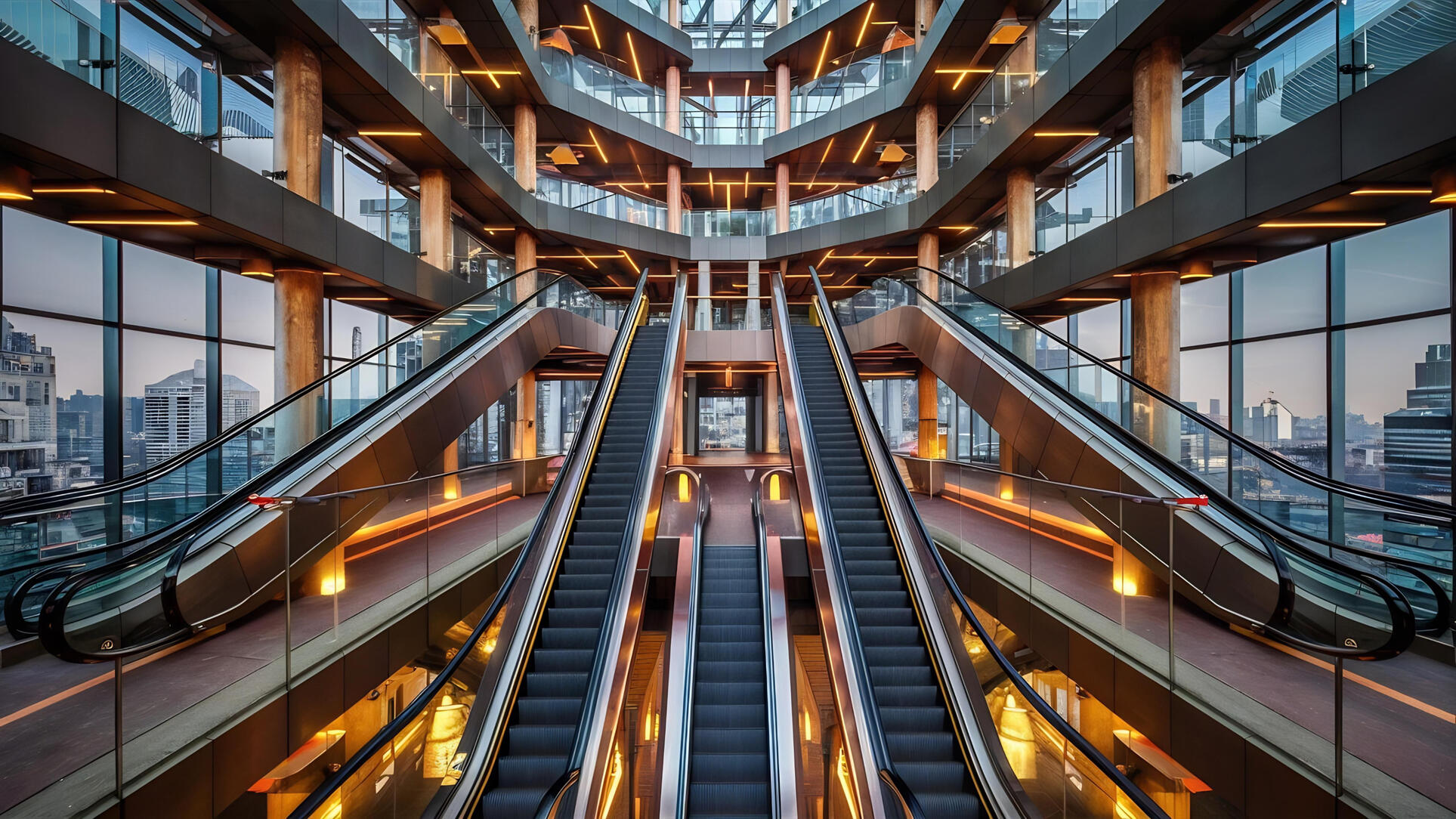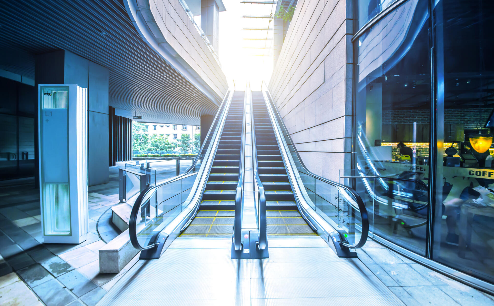 سلالم متحركة للمراكز التجارية أو المباني العامة.